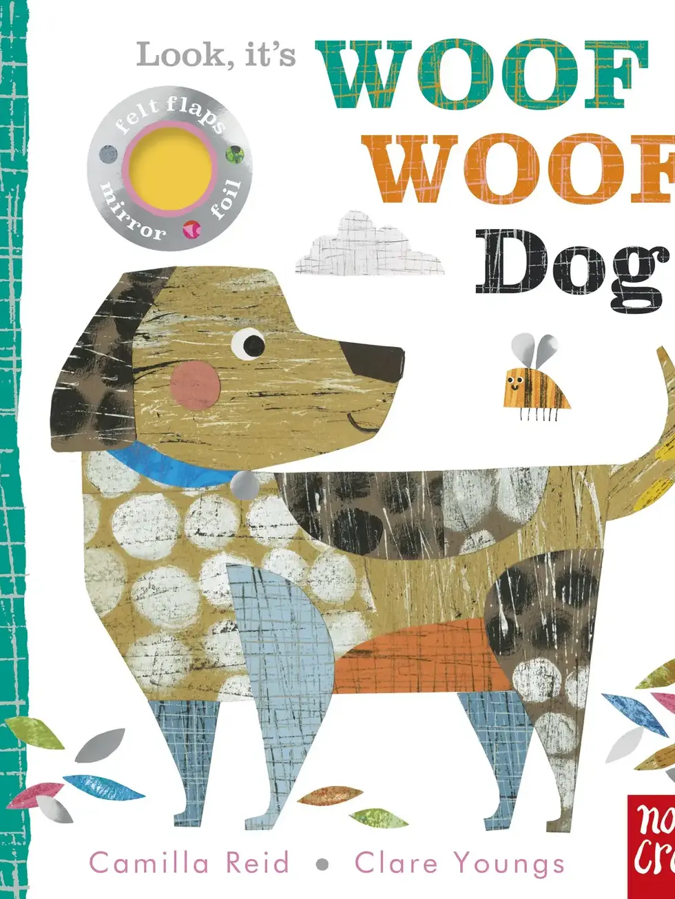 An exciting multi-sensory board book series written by Camilla Reid, with illustrations from acclaimed collage artist Clare Youngs! Pre-schoolers will adore Clare Youngs’s friendly animals with their high-contrast collage artwork, decorative foil highlights, and signature animal noises—but there’s a tiny creature to find behind a tuggable felt flap, too! In this book, you’ll meet Munch Munch Rabbit, Glub Glub Fish, Quack Quack Duck, and Woof Woof Dog herself. With a final “recap” page of animal noises, and the question, “But what noise do YOU make?,” little readers will enjoy lifting the last flap and saying “hello” to themselves in the surprise mirror!